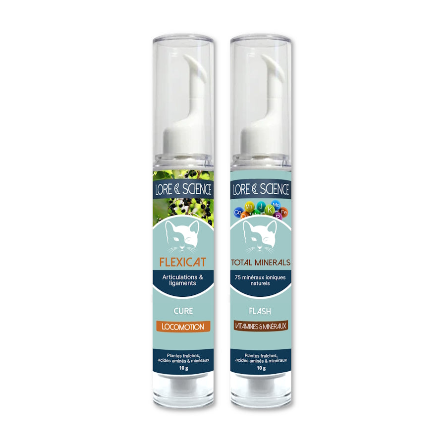 duo of natural supplements to help your cat's joints, mobility and cover their need for mineral intake, this pack contains: FlexiCat and Total Minerals Cat