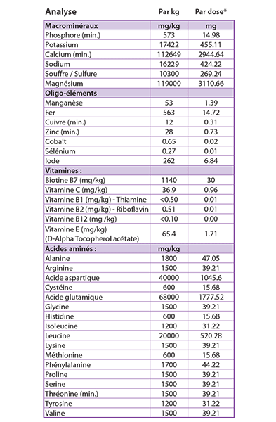 Zoccoli & Salute è un integratore secco naturale ricco di minerali: iodio, zolfo, ferro, calcio, rame, magnesio e selenio, oltre ad aminoacidi, vitamine (B1, B2, B12, C ed E) e beta-carotene.